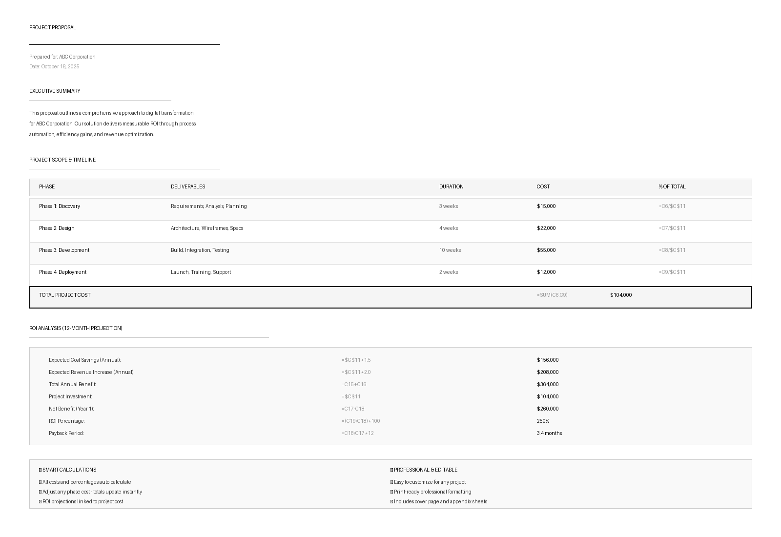- Professional Layout - Impress clients with polished, organized proposals